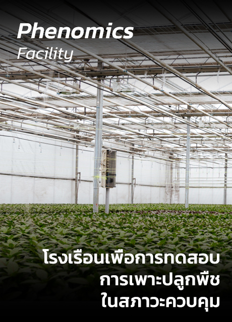 โครงสร้างพื้นฐานเพื่อสนับสนุนการศึกษาลักษณะการแสดงออกของพืช ทั้งทางด้านสรีรวิทยาและการสร้างผลผลิตที่ตอบสนองต่อสภาวะแวดล้อมต่าง ๆ ผ่านการประยุกต์ใช้ระบบประเมินสรีระวิทยาและรูปลักษณ์ขั้นสูงของพืชอย่างรวดเร็วและแม่นยำ (High throughput Phenotyping) และ ระบบ Image Analysis ที่ประกอบไปด้วย Chlorophyll Fluorescence Units, Thermal Imaging Unit และ Hyperspectral Imaging Unit และรองรับการประมวลผลในรูปแบบ 3D