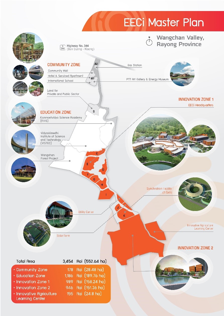 ทำความารู้จักกับองค์ประกอบภายในพื้นที่ EECi กว่า 3,000 ไร่ ณ วังจันทร์วัลเลย์ จังหวัดระยอง ซึ่งจะเป็นเมืองนวัตกรรมชั้นแนวหน้าของภูมิภาค ก่อนที่เฟสแรกจะพรัอมเปิดใช้งานในปลายปี 2564